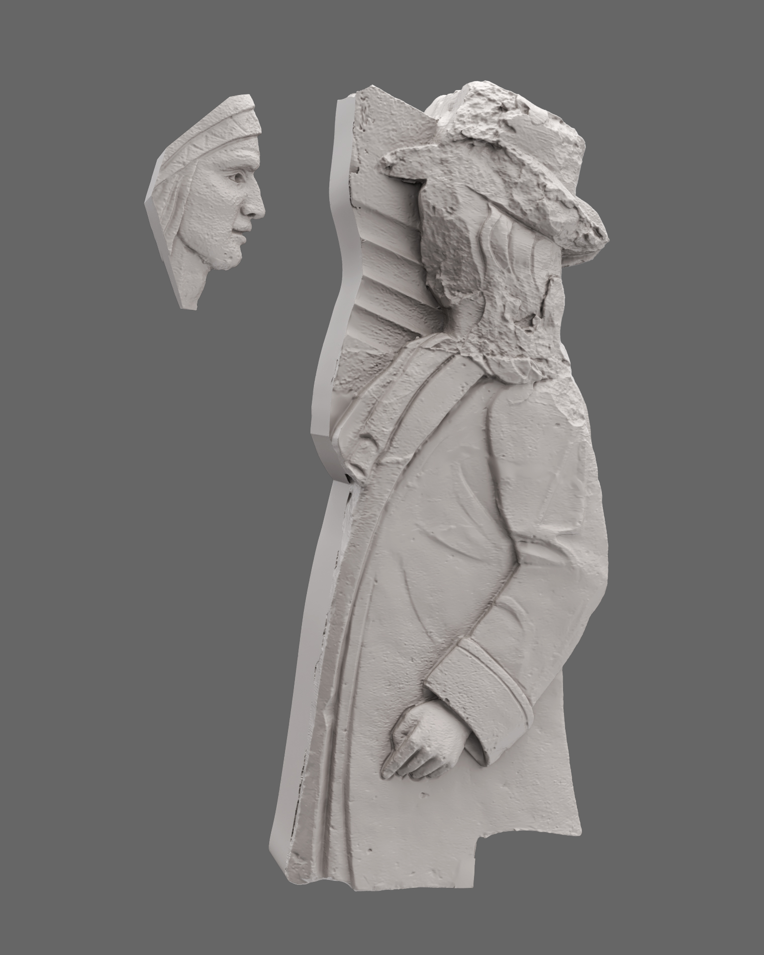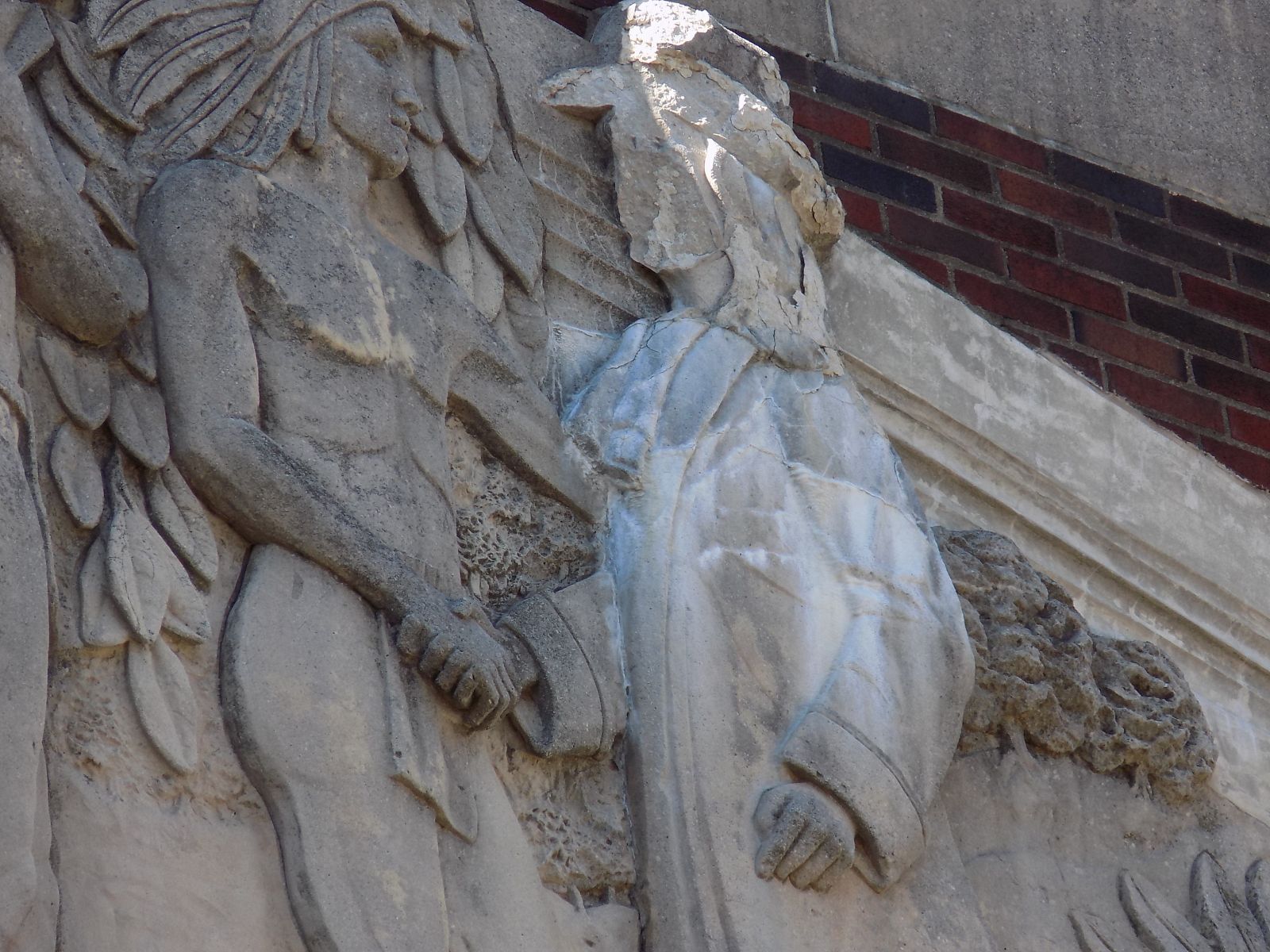 This restoration project is a replication of an existing 44′ long x 8′ high set of decorative relief panels on the PA Farm Show Complex. The North and South elevations shared identical panels, but the North side deteriorated. The South panels were 3-D laser scanned and then full-scale 3D positives milled by CNC out of high-density urethane foam. This allowed us to capture the original elements precisely. Afterwards, we created custom rubber molds and cast the new cast stone panels. Accordingly, the molding process also required fabricating custom fit mold sides that correspond to the irregular panel shapes.